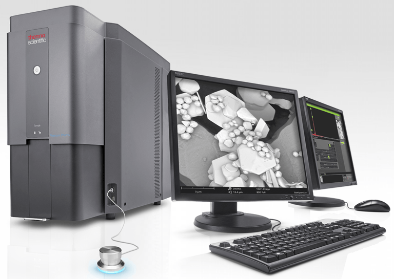 Thermo Scientific Phenom Pharos is a desktop SEM with a FEG source that makes crisp, high-brightness images with resolution <4 nm and magnification up to 1,000,000X. The systems is equipped with an EDX sensor for elemental analysis.