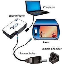 Raman spectrometer (QE Pro-Raman-532, Ocean Insight) collects Raman scattered light from 532 nm excitation. This spectrometer has the Raman shift from 150 cm-1to 4000 cm-1, the optical resolution of 0.42 nm FWHM, the integration time from 8 ms to 3600 s, and a 1044×64 element CCD detector. Equipped with a Raman probe and sample holder.